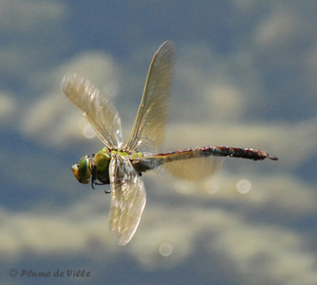 Une bonne cinquantaine de photos et juste celle-ci et pas terrible. Au moment où on croit l'avoir en visée, elle quitte son vol stationnaire et repart à angle droit dans une autre direction, vite, très vite.