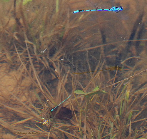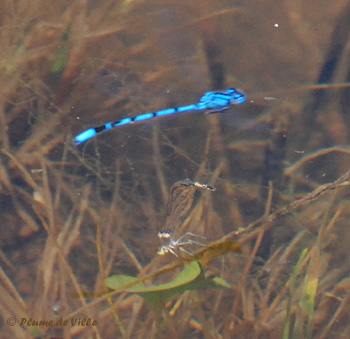 là. Un autre couple d'Agrions portecoupe passe un peu plus