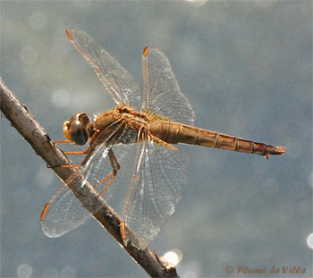 Et un petit dernier, un S. à nervures rouges Sympetrum fonscolombii (il y en a de moins en moins). Je n'ai malheureusement pas rencontré de femelle. J'espère que eux en auront rencontrées.