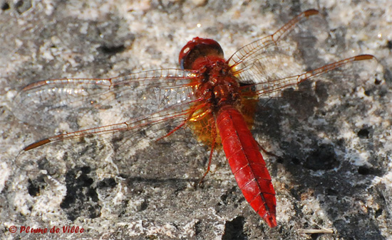 J'en vois un posé à découvert, rouge plutôt pâle. Il me semble être un S. strié. D'habitude ils sont plutôt perchés sur des herbes mais bon...