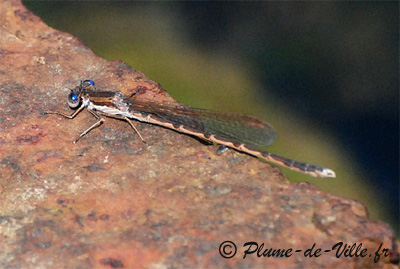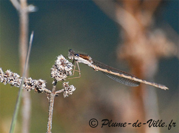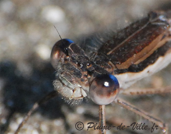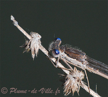 A cette époque de l'année, cette très discrète petite libelulle, a l'arrière des yeux d'un bien joli bleu.