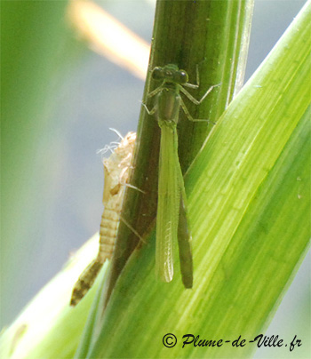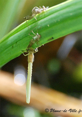 peut voir une exuvie de zygoptère (la sienne?) avec la "queue"