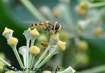 Sur les bizarres fleurs du lierre, cet autre syrphe se