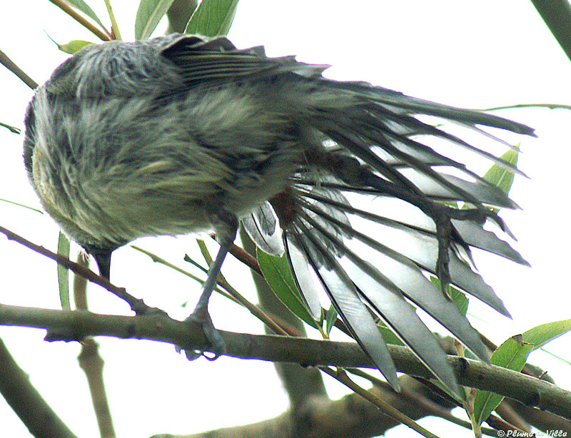and partly spread wings, well puffed up feathers, it affirms his presence