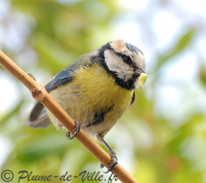 sharp beak of the tit but still surrounded by a large yellow moustache.