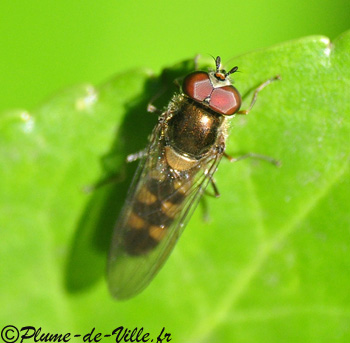 Ce petit Syrphe est, avec ses fines bandes alternées, visible un peu partout. Ses larves, voraces, s'attaquent aux pucerons issus de plusieurs espèces, tandis que les adultes, qui se nourrissent de nectar, interviennent dans la pollinisation.