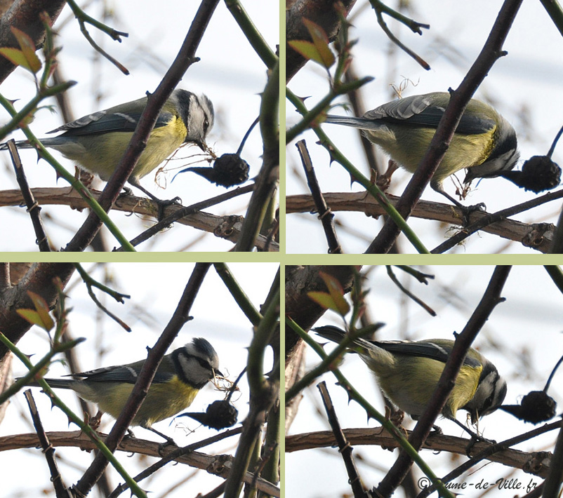 mésange dans la vidéo et dans son bec sur la