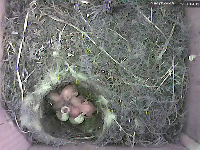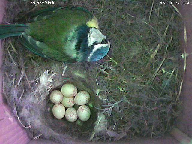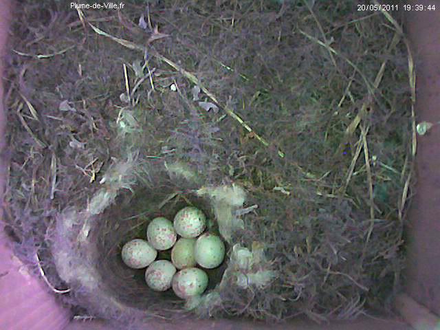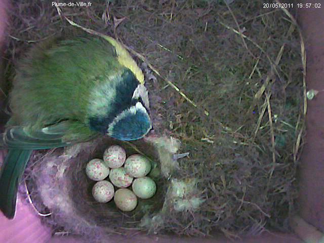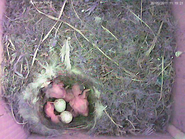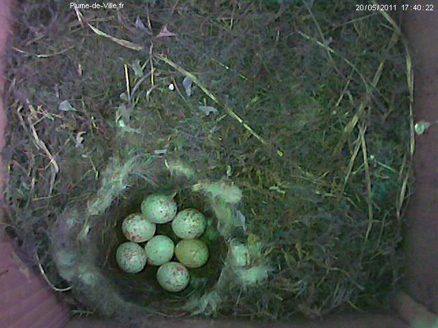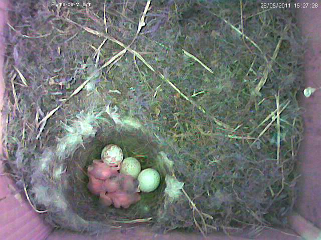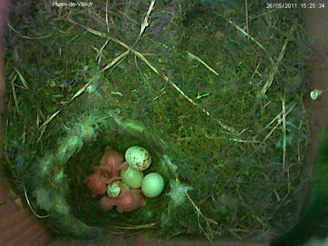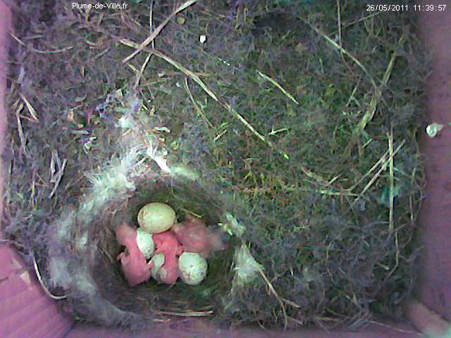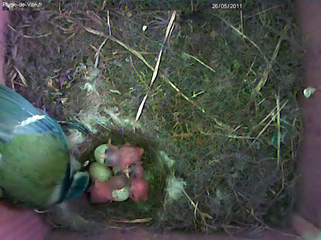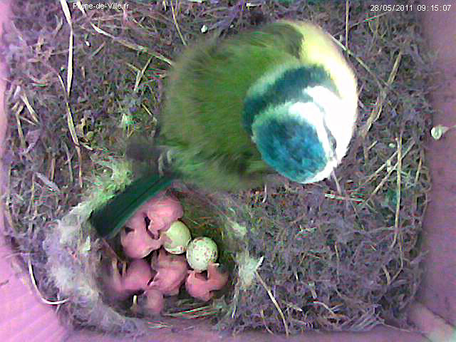 A 4h40 on voit la mère se lever, inspecter la coupe du nid et finir par sortir une demi- coquille.
