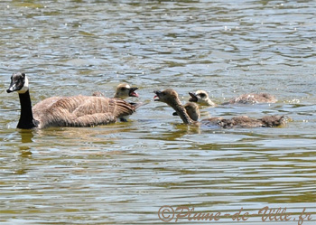 Enfin, après le bain et une longue exploration, les jeunes partent en suivant leur père. La mère entre au nichoir, les charbo sont parties, le calme est revenu.