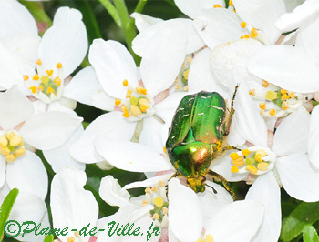 La Cétoine dorée est un ravissant et lourd bijou, pas vraiment délicat avec le cœur des fleurs qu'elle fréquente.