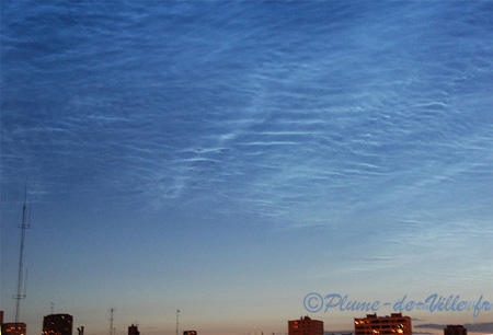 nuages noctulescents ou nuages mesospheriques (mesospheric clouds). Formation rare par ici.