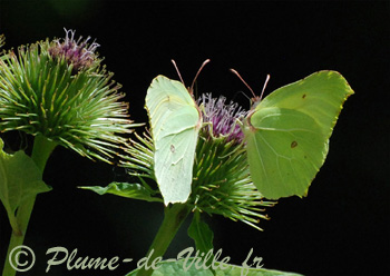 Mais cette fois, les voila ensemble, Madame, vert pale et Monsieur à son côté, qui lorsqu'il ouvre les ailes, est jaune citron.