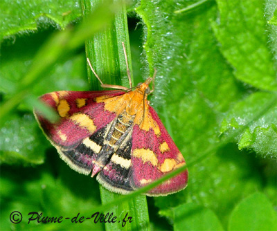 Joli petit papillon aux ailes très colorées. Mais les pyrales ne sont pas les bienvenues en agriculture, ce sont des ravageurs.