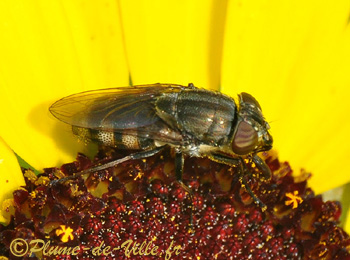 sombre comme un gros syrphe presque noir.