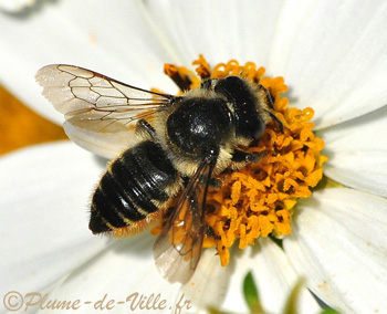 A son aile deux cellules cubitales, sous son abdomen boudiné une brosse à pollen orange vif. Elles sont encore nombreuses en ce moment.