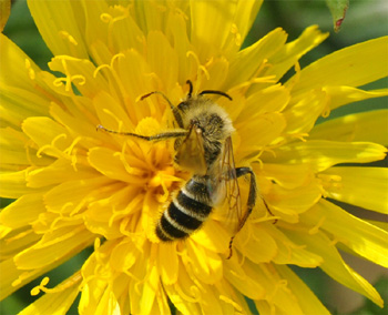 Abeille à culottes.Elle aime particulièrement les astéracées et spécialement les jaunes..