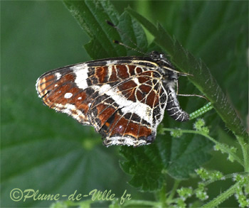 Une jolie Carte géographique en costume sombre de l'été, volète de feuille en feuille dans les Orties couvrant le sol.
