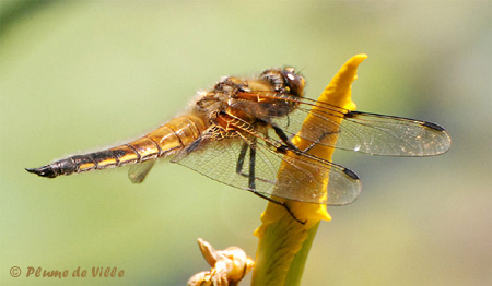 Il m'a bien intrigué avec ses ailes portées en toit, ses très longues antennes, sa couleur beige jaunâtre. On ne les distingue pas, car ses ailes antérieures sont bien plus longues que les postérieures, mais il a quatre ailes.