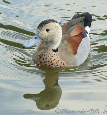 Tendresse des couleurs avec La Sarcelle (ou Canard) à collier noir. [Callonetta leucophrys - Ansériformes Anatidés -] (Ringed Teal)