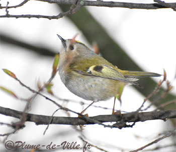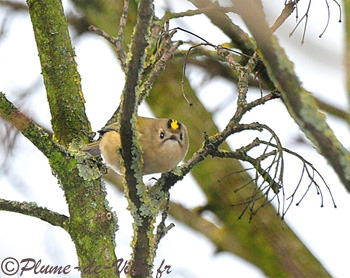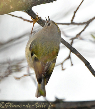 Ce n'est pas le cas des Roitelets huppés qui s'activent toujours, ils sont continuellement en mouvement, sautant de branche en branche, poussant leurs petits cris aigus en permamence.