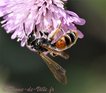 Cette Andrène niche dans le sol sableux, les champs et prairies sèches ou les chemins de passage. Cette abeille est fragile et en danger car elle dépend d'un type de fleur particulier de plus en plus absent et que son environnement de prairies et paturages secs se fait rare. Allez, plantez lui au moins quelques Scabieuses dans les jardins, en plus ces fleurs sont jolies et pas difficiles...