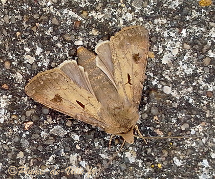 Juin, dérangé par un arrosage, une Noctuelle beige s'enfuit lentement "à pied".