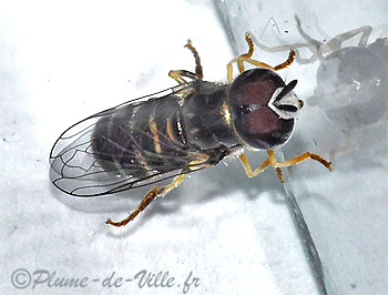 Un minuscule syrphe s'est posé sur la vitre de la cuisine.